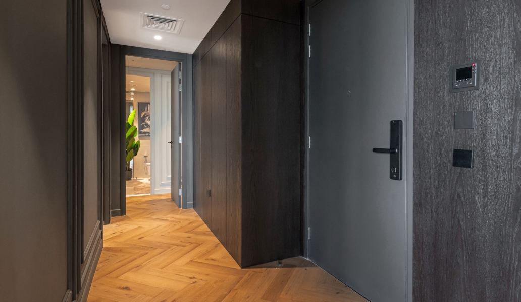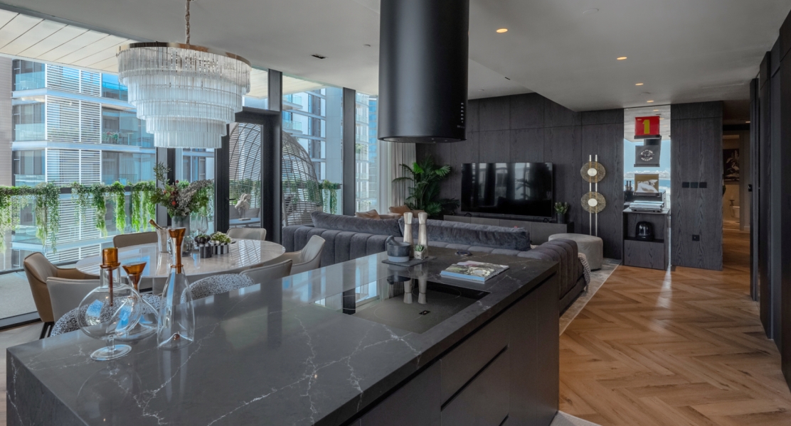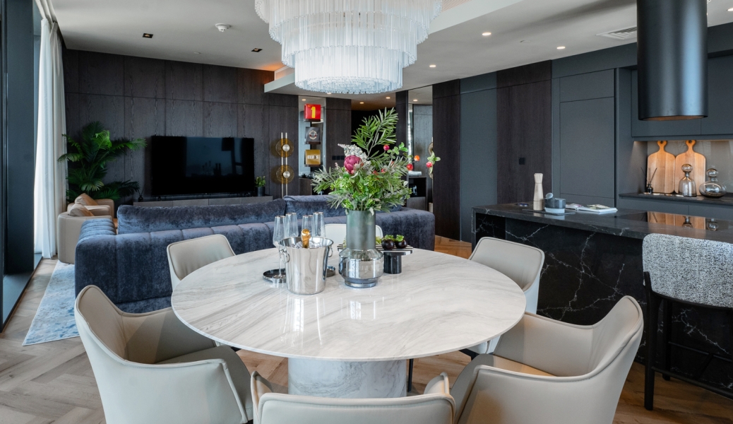 The modern kitchen is fully equipped with high-end appliances, perfect for both casual meals and entertaining guests. The two generously sized bedrooms come with built-in wardrobes and stylish en-suite bathrooms, ensuring privacy and comfort.