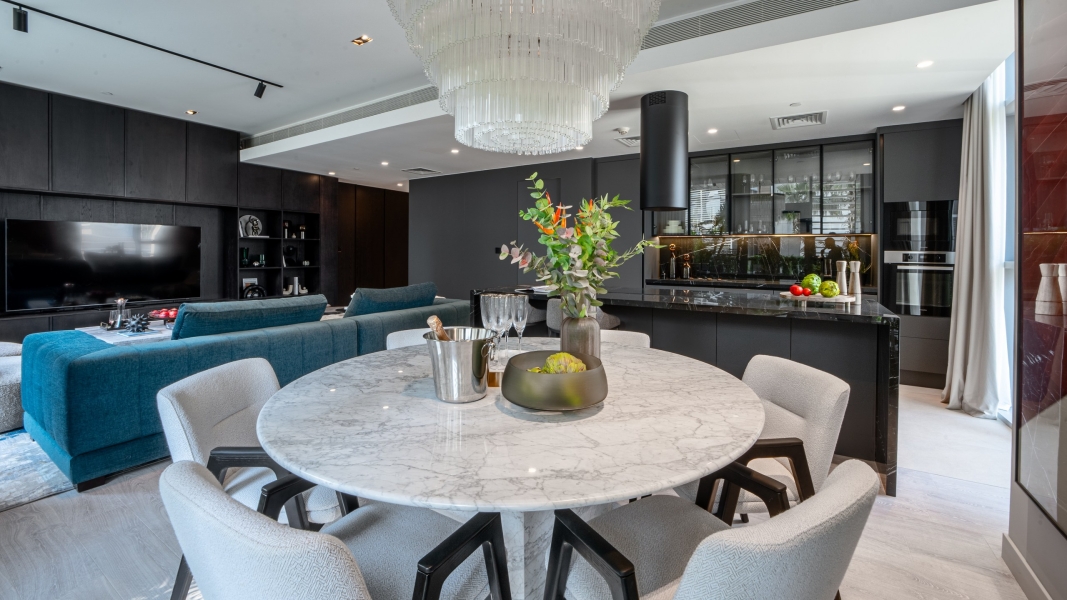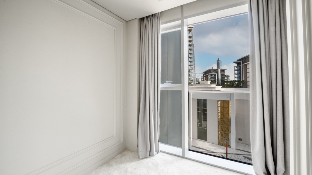 Inside, the open-plan layout includes a bright living and dining area, a modern kitchen with premium appliances, and three well-sized bedrooms with built-in wardrobes. The maid’s room adds extra convenience and flexibility for families. Floor-to-ceiling windows fill the space with natural light and connect the indoors to the lush views outside. Residents also enjoy access to top-class amenities, including swimming pools, a gym, landscaped walkways, and nearby shops and restaurants.